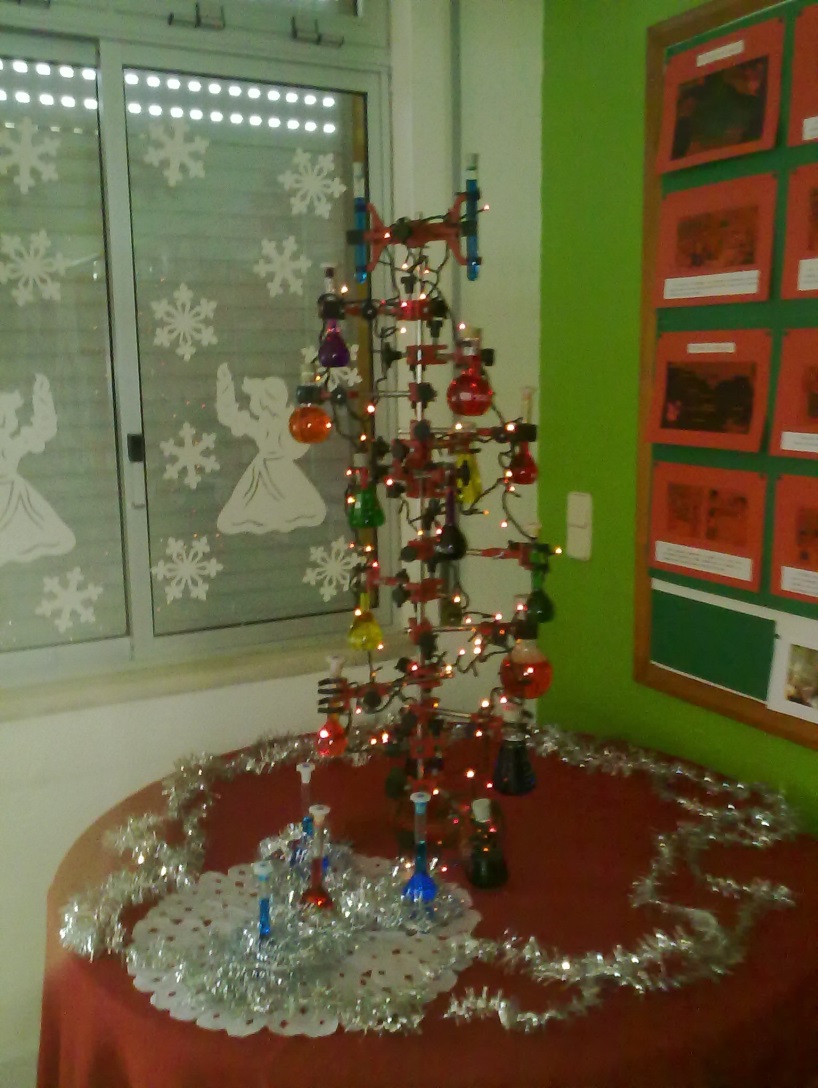 No dia 12 de dezembro os alunos do pré-escolar de Ribamar festejaram esta Quadra Natalícia construindo uma Árvore de Natal com material do laboratório de Química, enfeitando-a com as cores do arco-íris.