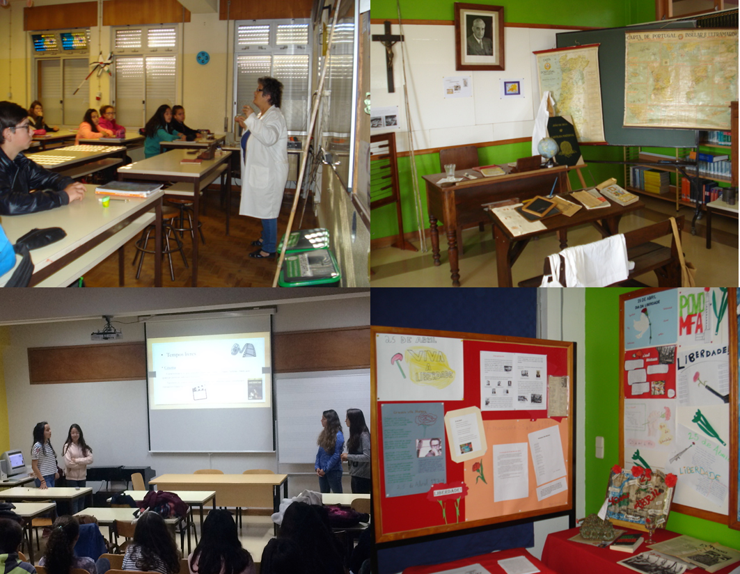 - As turmas do 9.º ano deram uma aula às do 6.º ano, a partir de apresentações elaboradas na sequência das investigações realizadas. Os mecanismos repressivos da ditadura, o estatuto da mulher, a escola e a vida quotidiana foram alguns dos temas abordados.