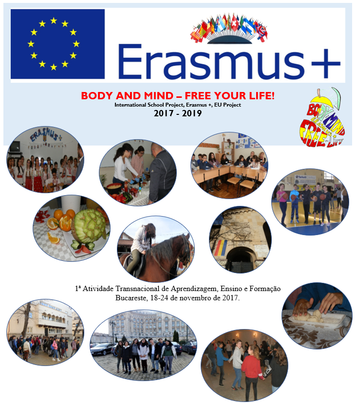 São alguns momentos do 1º intercâmbio de escolas do Projeto Erasmus+ “Body and Mind – Free your Life!”, na Escola “Sfanta Treime”, em Bucareste, que decorreu durante uma semana, com alunos e professores dos 4 países envolvidos: Portugal, Roménia, Espanha e Polónia. Do AEDLV participaram 5 alunos do 3º ciclo, da Escola Dr. João das Regras e da Escola de Ribamar, e duas professoras.