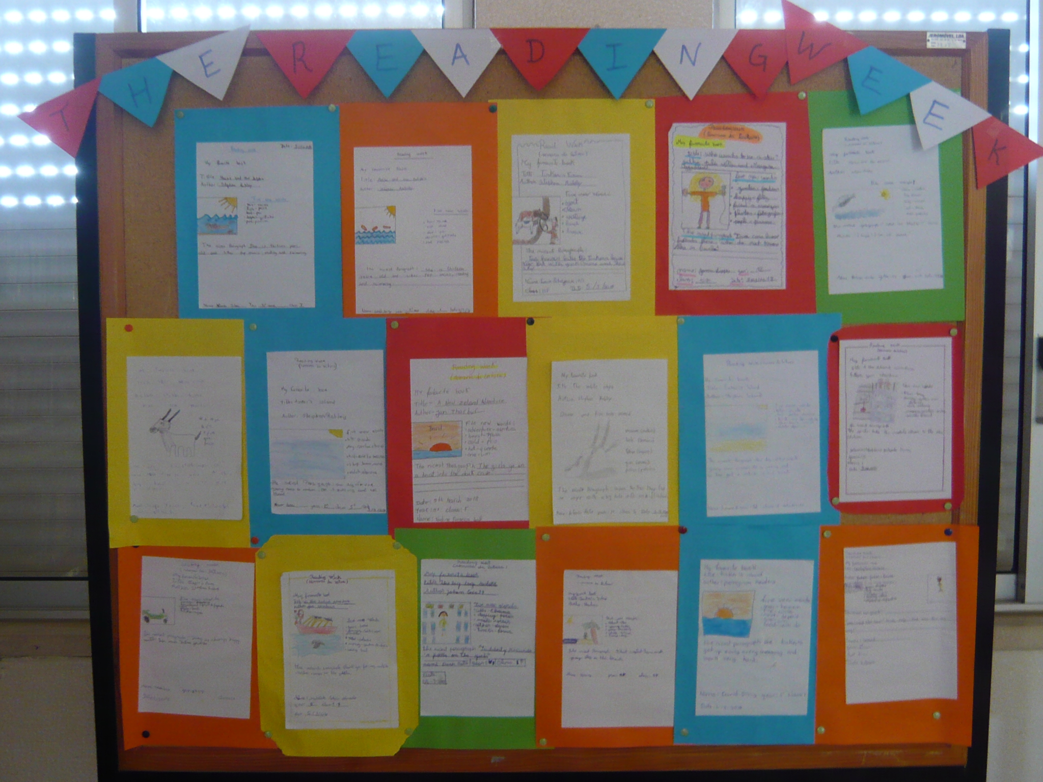 A disciplina de Inglês do 2º ciclo, turma F, colaborou na Semana da Leitura com a apresentação de um trabalho que resultou da análise salpicada de vários livrinhos da Biblioteca Escolar dedicados àquela disciplina. Os alunos foram levados a realizar uma tarefa de leitura comparada, na sala de aula, tendo posteriormente escolhido aquele de que mais gostaram: “My favourite Book”. Esta atividade destinou-se, acima de tudo, a motivar os alunos para a leitura, através do cumprimento do segundo e oitavo direitos do leitor (estabelecido por Daniel Pennac) - "Direito de saltar páginas" e "Direito de ler trechos soltos".