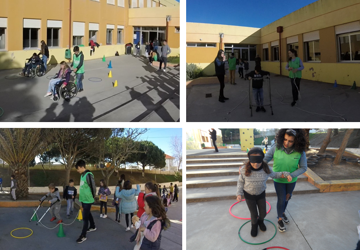 As atividades desenvolvidas consistiram na apresentação de vídeos, histórias e músicas alusivas à temática e na dinamização de uma Gincana dos Sentidos, com realização de percursos utilizando cadeira de rodas, muletas, andarilhos e vendas para olhos, o que permitiu aos alunos tomar consciência das dificuldades sentidas por pessoas com limitações motoras e físicas e visuais.