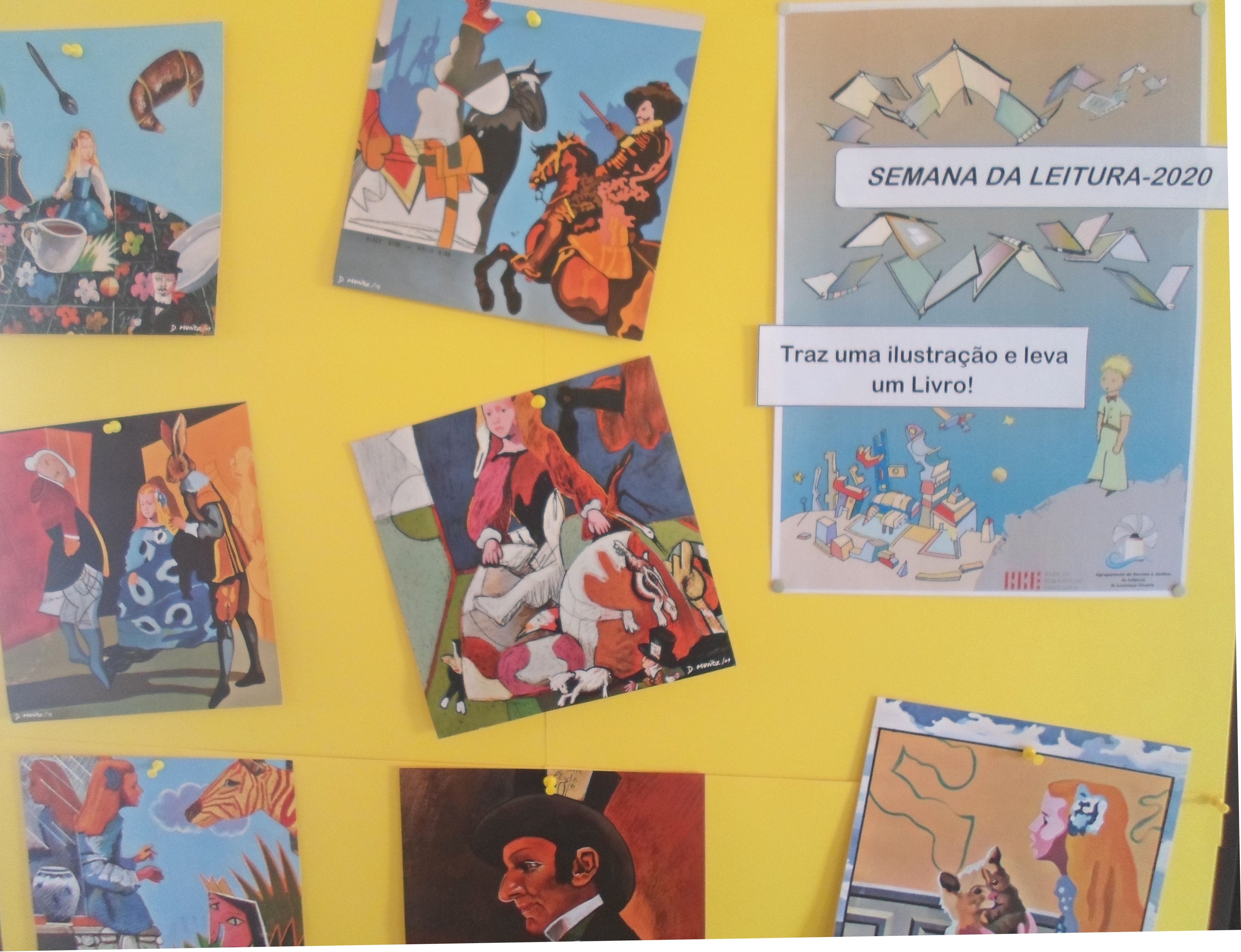 Articulando as artes com a leitura, a equipa da BE disponibilizou uma tarefa que consiste na troca de uma ilustração, realizada pelos discentes, por um livro à escolha.